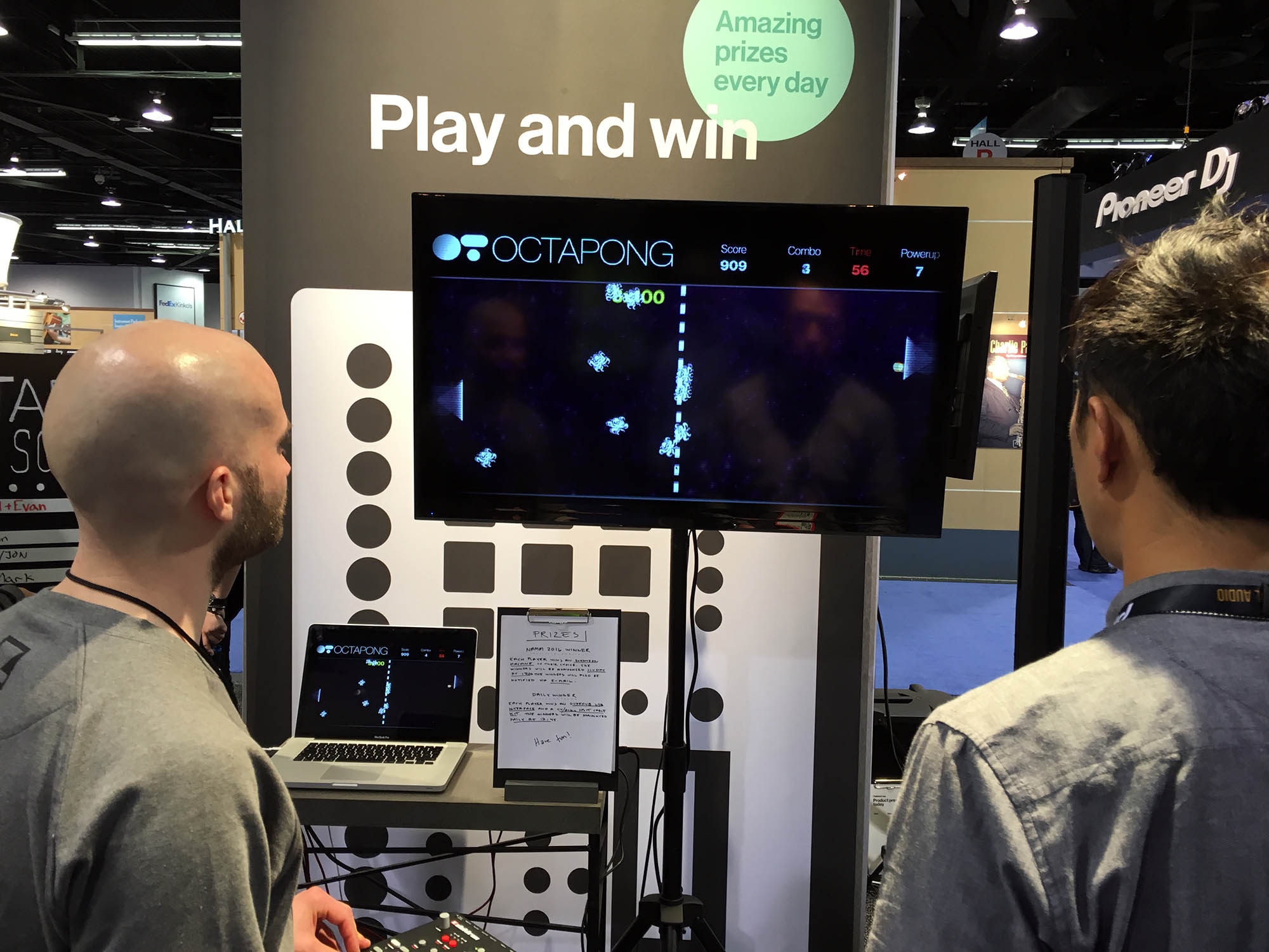 | I don;t know what they were selling at this booth, but they were playing OctaPong. It appears to be good old Pong with octopi added. I think you get extra points for killing off the octopi. |