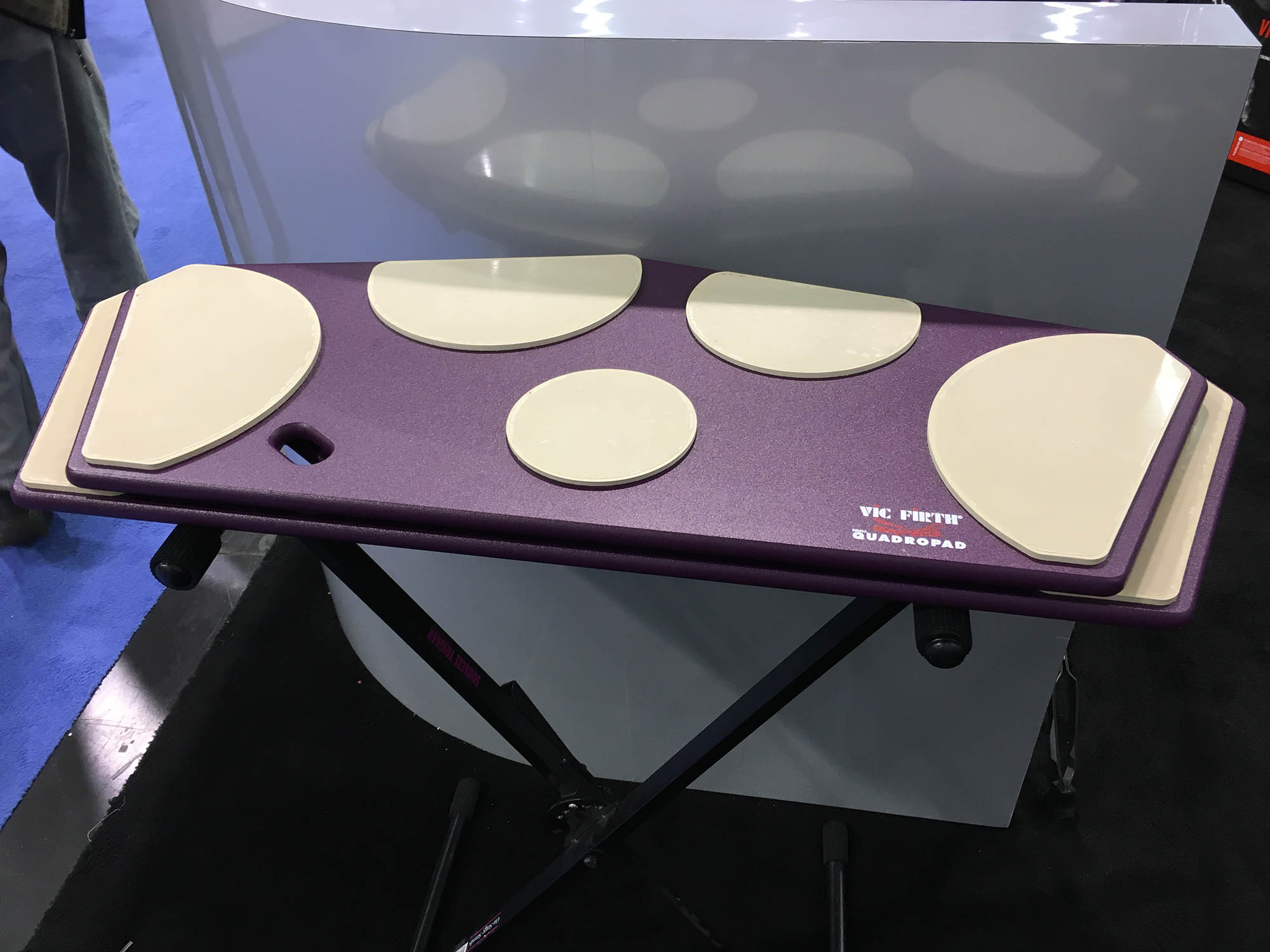 | I hate practicing drums using a practice pad. Perhaps if I had this one, it would help! It is basically five practice pads on a board. For some very strange reason, it is called a "QuadraPad!" I think Vic Firth needs to review its numbers. |
